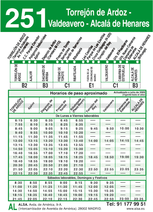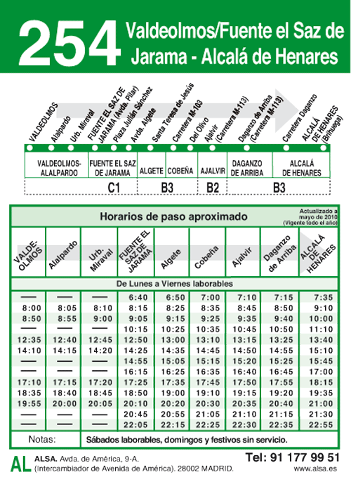 - 254 - Valdeolmos/Fuente El Saz - Valdeavero - Alcalá - Ver horarios