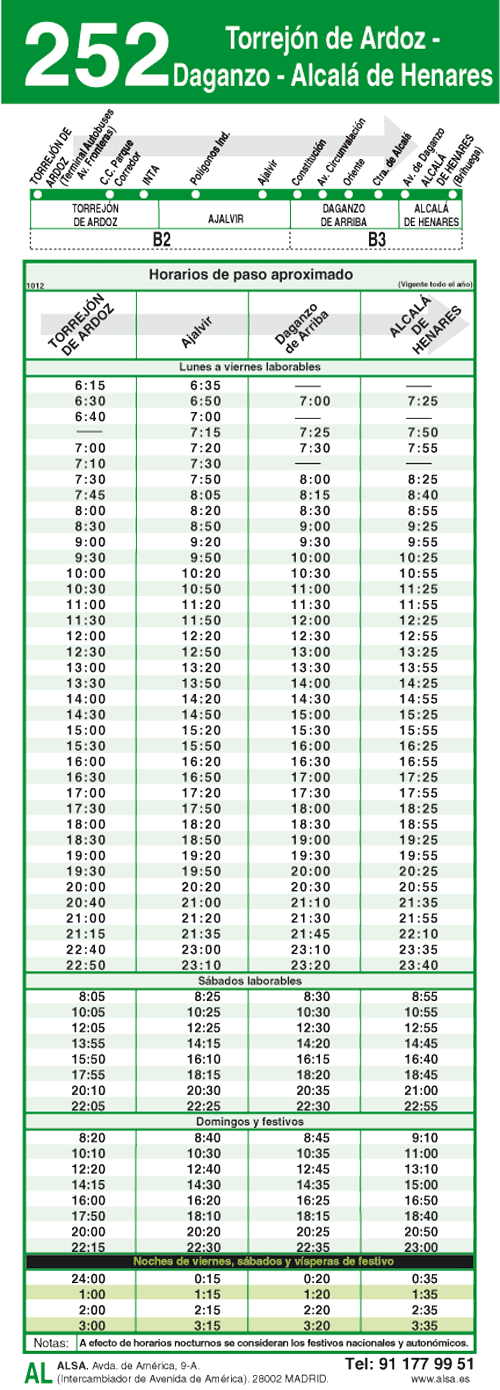 | Líneas de autobuses y horarios que pasan por Daganzo de Arriba |