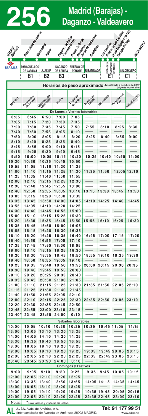 - 256 - Madrid (Barajas) - Daganzo - Valdeavero - Ver horarios